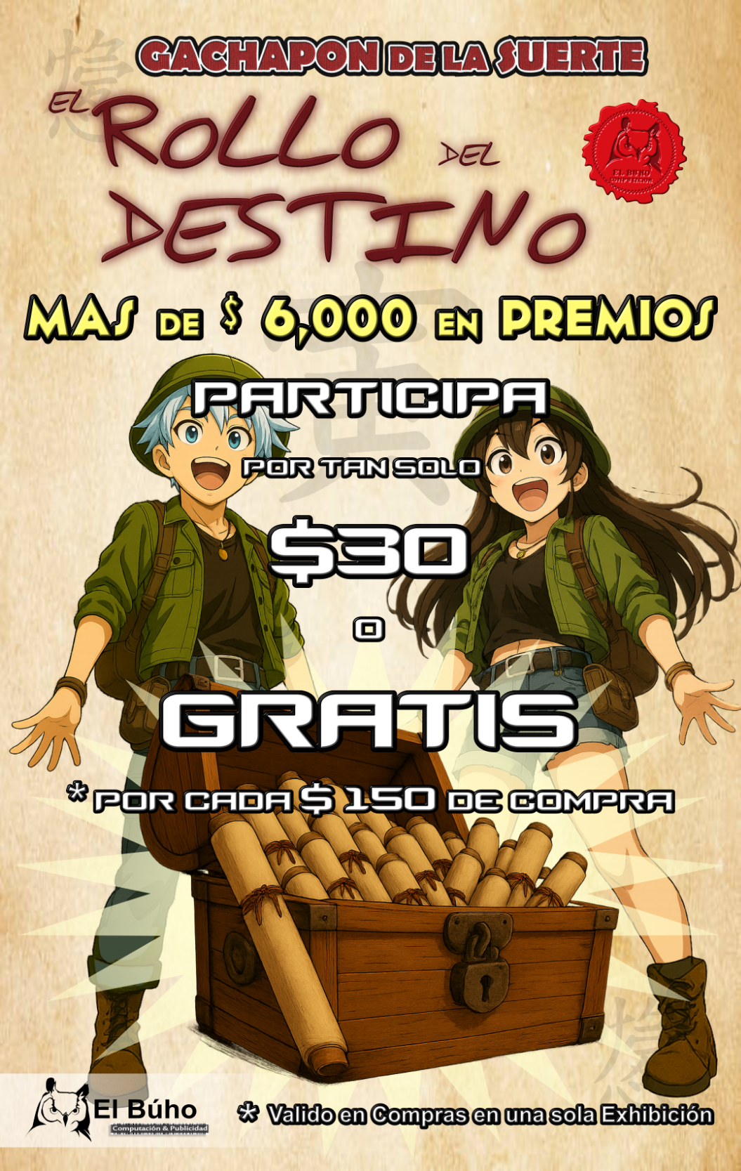 #ElRolloDelDestino #GachaponDeLaSuerte #ElBuhoComputacion #SorteoGeek #PremiosLegendarios #ScrollsConEstilo